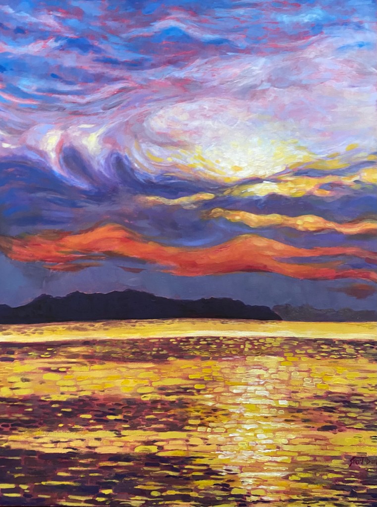 Barnfield Sunset, Acrylic on Wood Panel, 30″ x 40″ $2200