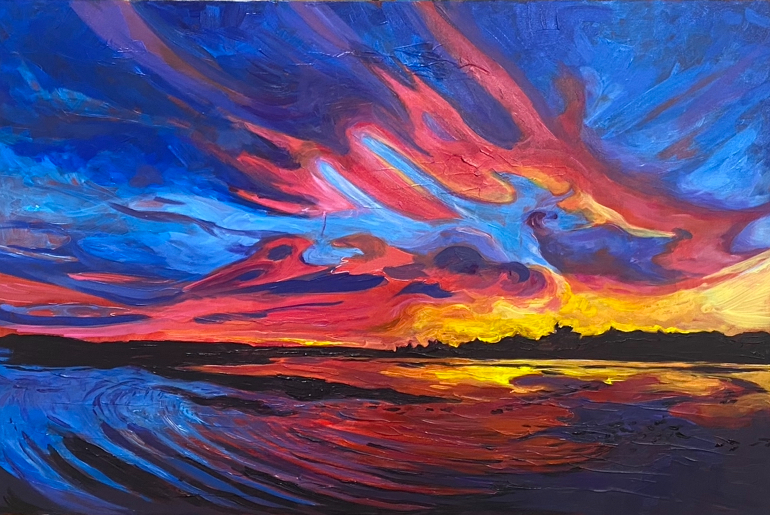 Lake of Bays Sunrise, Acrylic on Canvas, 24″ x 36″ $550